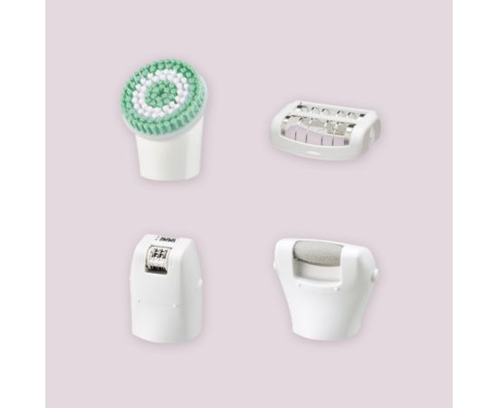 Набор из 7 предметов (эпиляционная насадка для ног и рук, маленькая насадка для эпиляции, насадка для деликатной эпиляции, насадка для глубокого пилинга, насадка для стоп, чехол для хранения, чистящая щеточка)