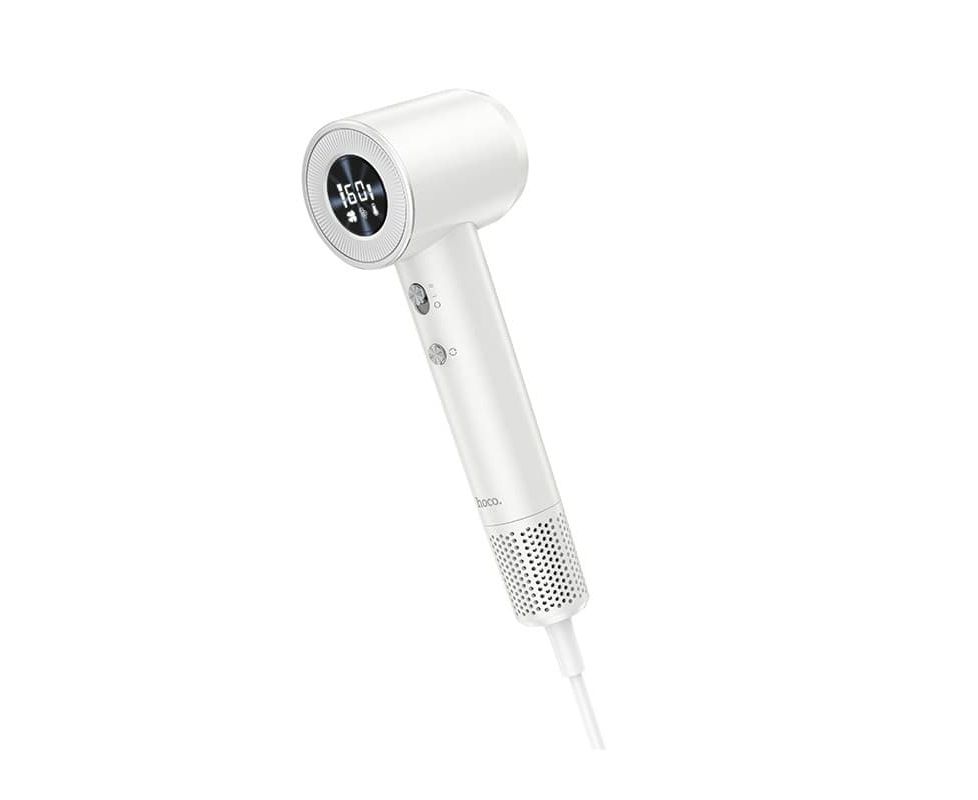 Фен HOCO HP10 (белый) EU, высокоскоростной, с дисплеем, 1600W, ионизация, 2 скорости, 4 режима температуры