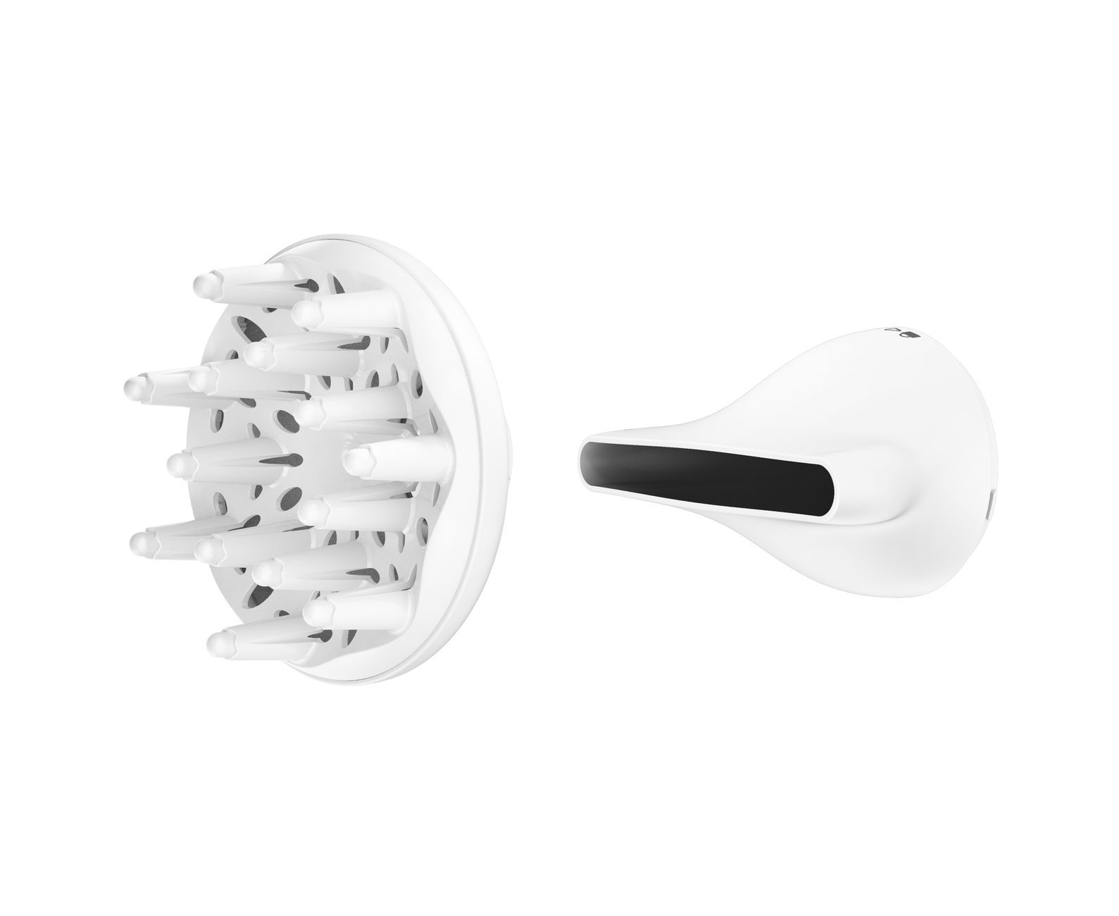 В комплекте – две насадки. Узкий 8-миллиметровый концентратор пригодится для вытягивания прядей брашингом и проработки каких-то отдельных элементов причёски. Диффузор создаст объём и поможет аккуратно и быстро высушить пышные и вьющиеся волосы, не запутав их.