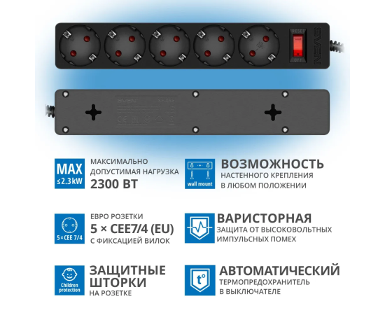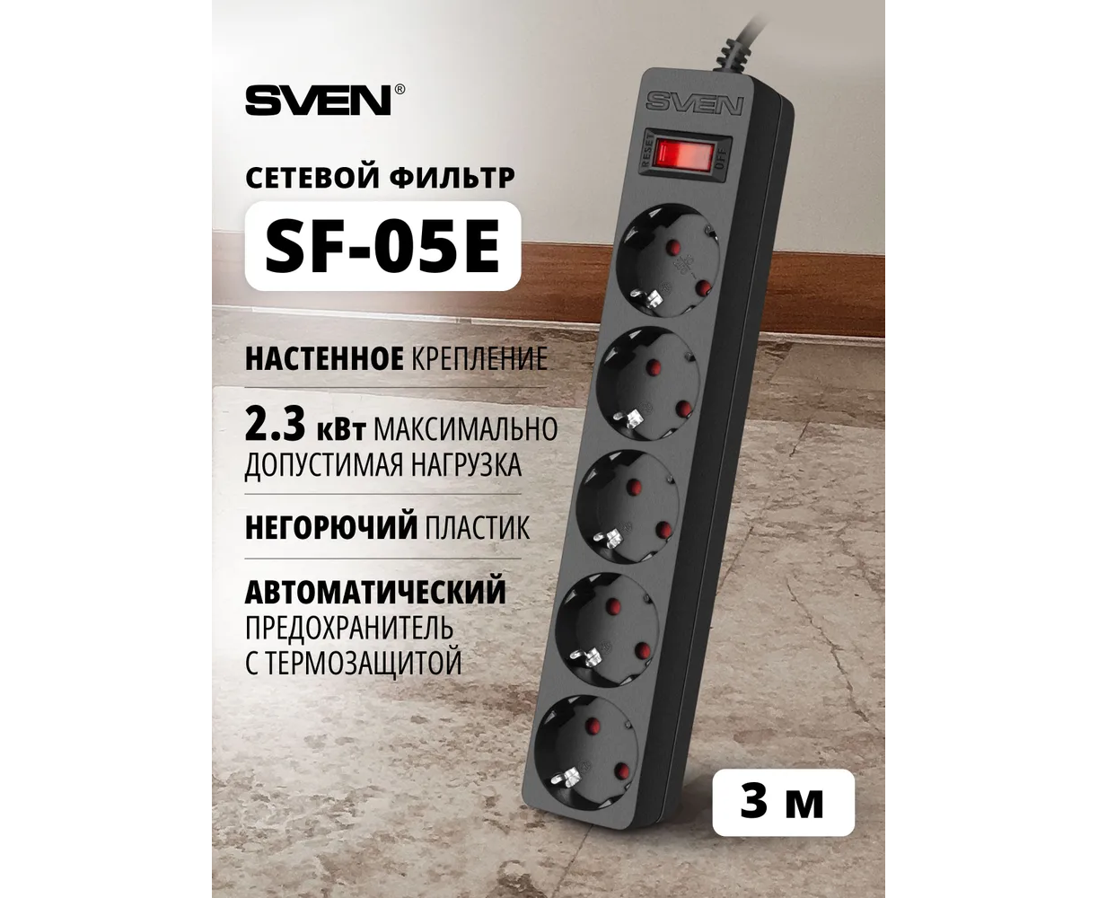 Сетевой фильтр EURO Sven SF-05E представляет собой простое в использовании и эффективное устройство, предназначенное для защиты потребителей электрического тока от перепадов напряжения в сети и высокочастотных помех.