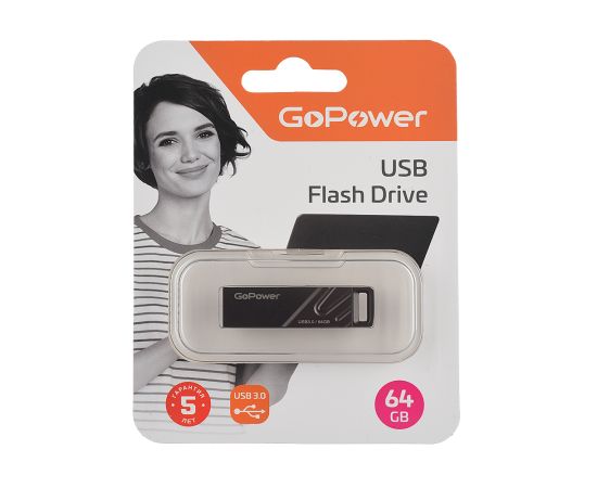 Флеш-накопитель GoPower TITAN 64GB USB3.0 металл черный графит (1/50/1000)