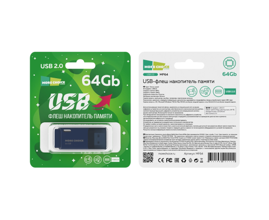 Флеш накопитель памяти USB 64GB 2.0 More Choice MF64 (Dark Blue)