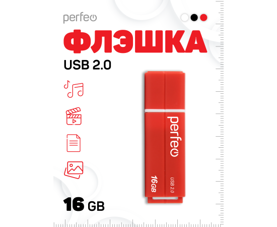 Флешка Perfeo USB 16GB C01G2 / Красная, (Арт. PF-C01G2R016)