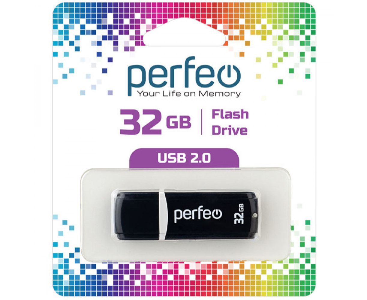 Флешка Perfeo USB 32GB C02 / Чёрная, (Арт. PF-C02B032)