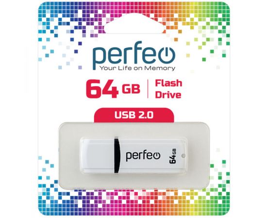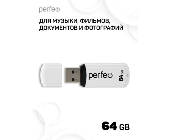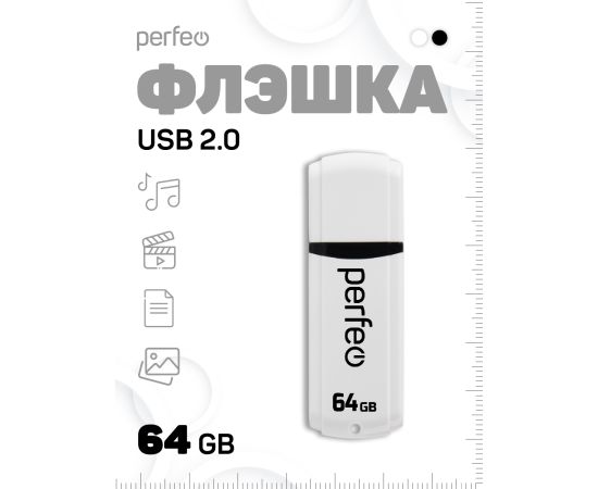 Флешка Perfeo USB 64GB C02 / Белая, (Арт. PF-C02W064)
