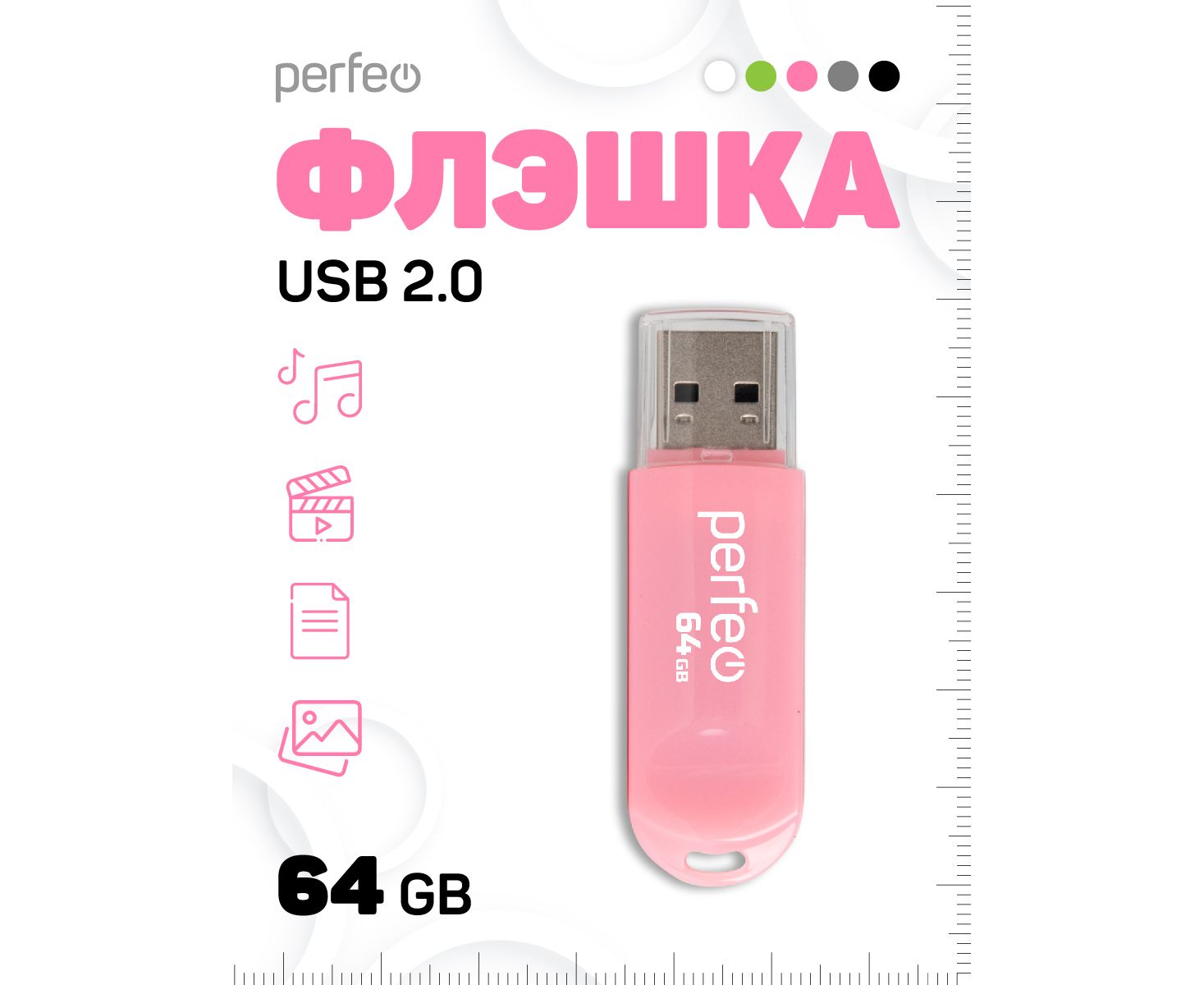 Флешка Perfeo USB 64GB C03 / Розовая, (Арт. PF-C03P064)