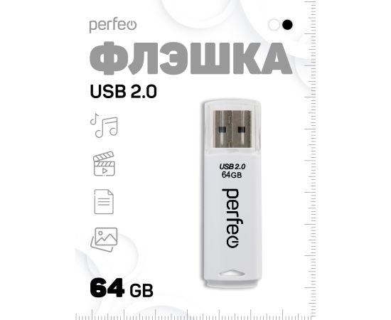 Флешка Perfeo USB 64GB C06 / Белая, (Арт. PF-C06W064)