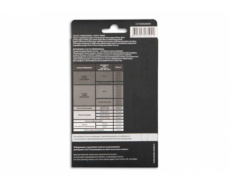 Фотобумага Cactus Prof CS-HGA626050 10x15/260г/м2/50л/белый глянцевое для струйной печати