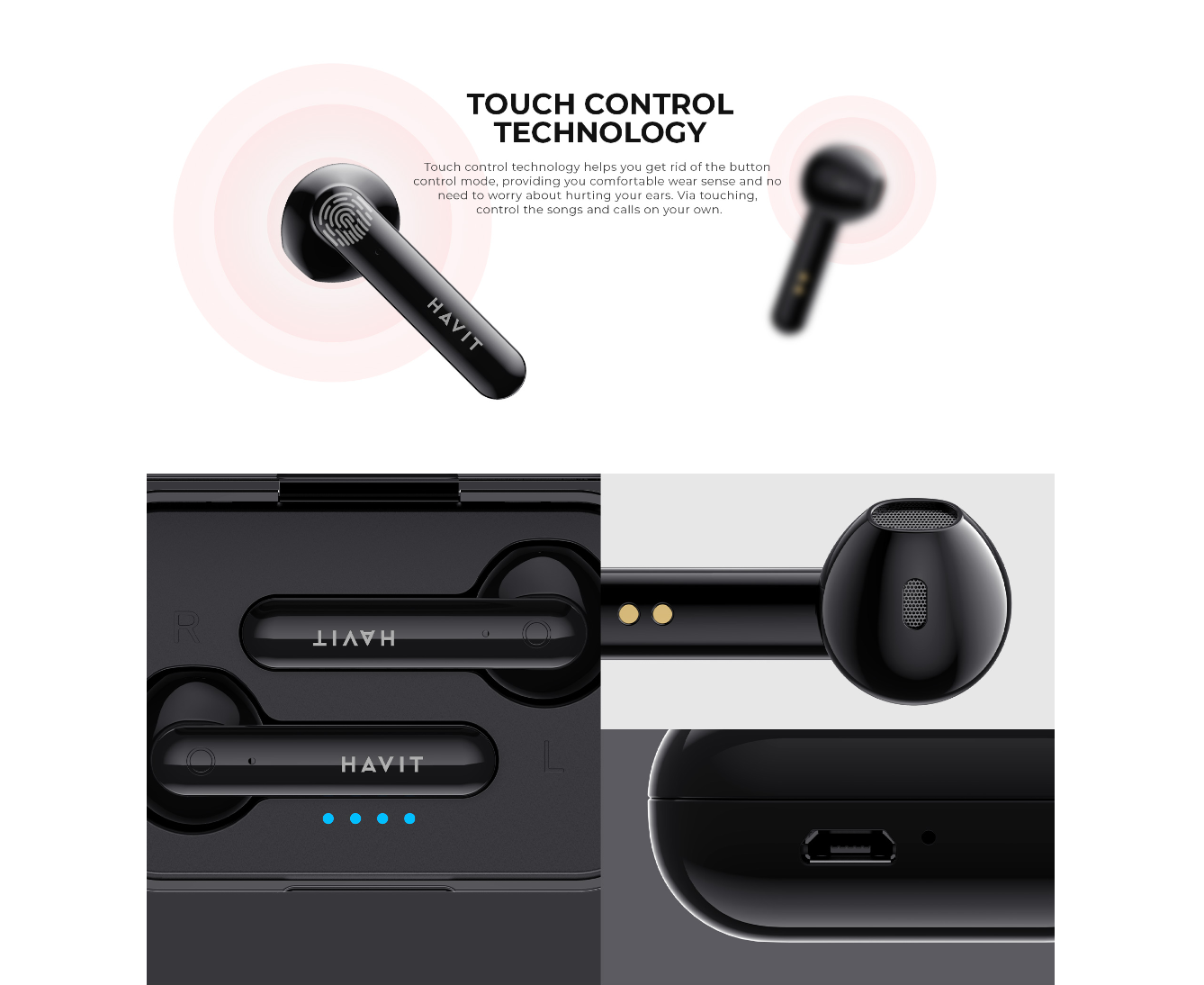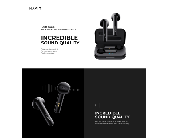 Гарнитура беспроводная вкладыши HAVIT HV-TW935 Bluetooth V5.0 TWS. Черная