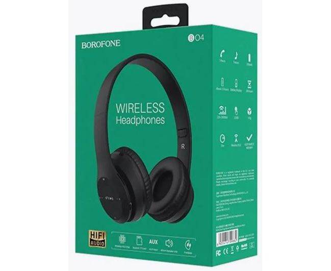 Bluetooth-наушники полноразмерные Borofone BO4 Charming rhyme (black) 1. Динамик: диаметр 40 мм 2. Спецификация Bluetooth: Bluetooth V5.0 JL 3. Поддержка протоколов: A2DP, AVRCP, HSP, HFP 4. Зарядное напряжение: DC 5V Время зарядки: около 1,5 часов 5. Время звонка / музыки: около 5 часов