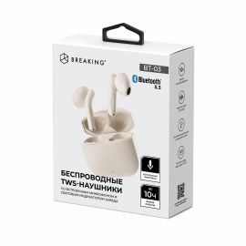 Беспроводная стереогарнитура Breaking BT-03, Bluetooth 5.3 (Бежевый)