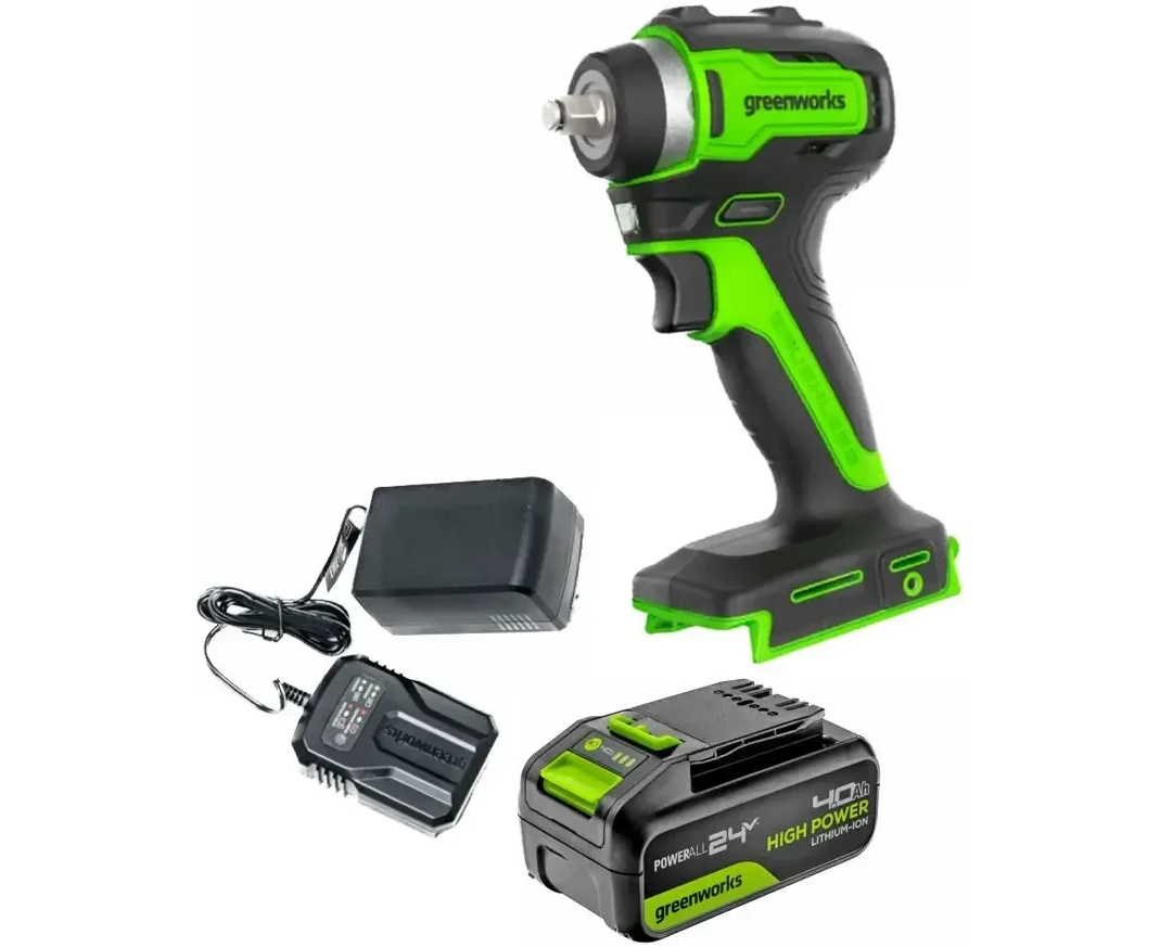 Гайковерт Greenworks G24IW200 (3803607CUB) ударный аккумуляторный, 24V, 200 Нм, бесщеточный, 3/8'', 1х4Ач, ЗУ, кор