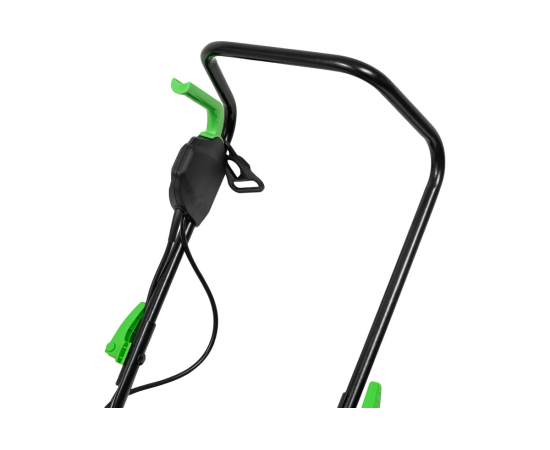 Удобная регулируемая и складная ручка обеспечивает комфортное управление, а наличие травосборника из нейлона и пластика позволяет легко собирать скошенную траву.
