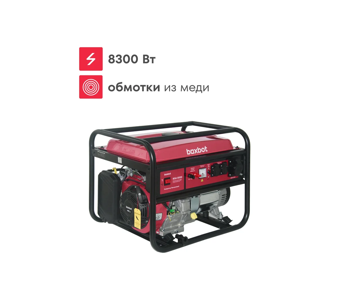 Бензиновый генератор Boxbot BGA 8000 с максимальной мощностью 8,3 кВт - это надежный источник энергии для самых разных задач.