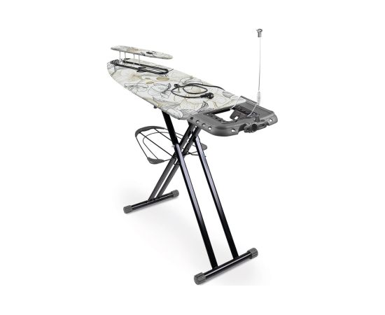 Широкая гладильная доска предназначена для глажки белья. Модель оснащена электросоединителем и эргономичной подставкой под утюг.
