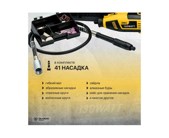 Укомплектована набором аксессуаров в количестве 41 шт. в собственном пластиковом кейсе - можно начать работать сразу после покупки.
