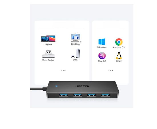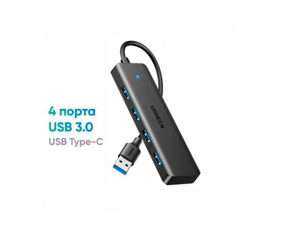 Хаб UGREEN CM219 (35574) 4-Port USB 3.0 Hub with USB-C power port 1m Black