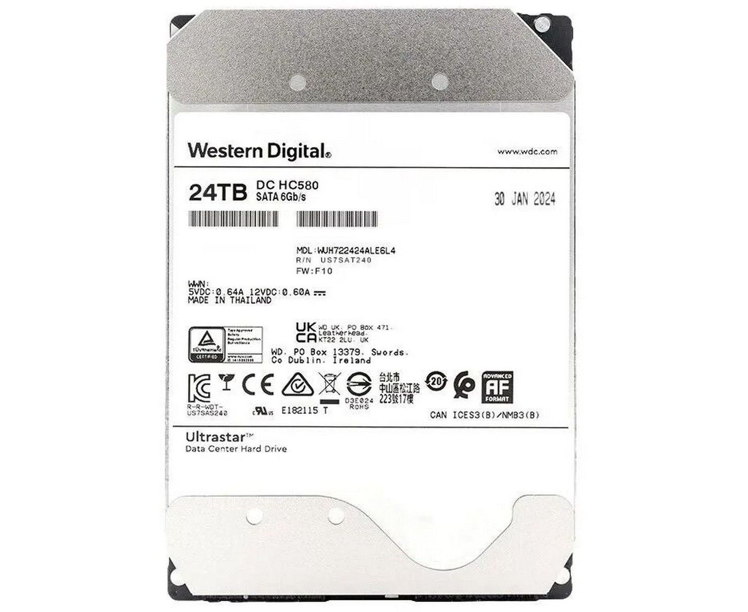 HDD Western Digital Ultrastar DC HC580 WUH722424ALE6L4 3.5" 24TB 7200RPM SATA3 6Gb/s and 512MB Cache