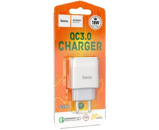 Сетевое зарядное устройство HOCO C72Q/ QC 3.0/ 1 USB/ Выход: 5V_9V_12V, 18W/ Белый