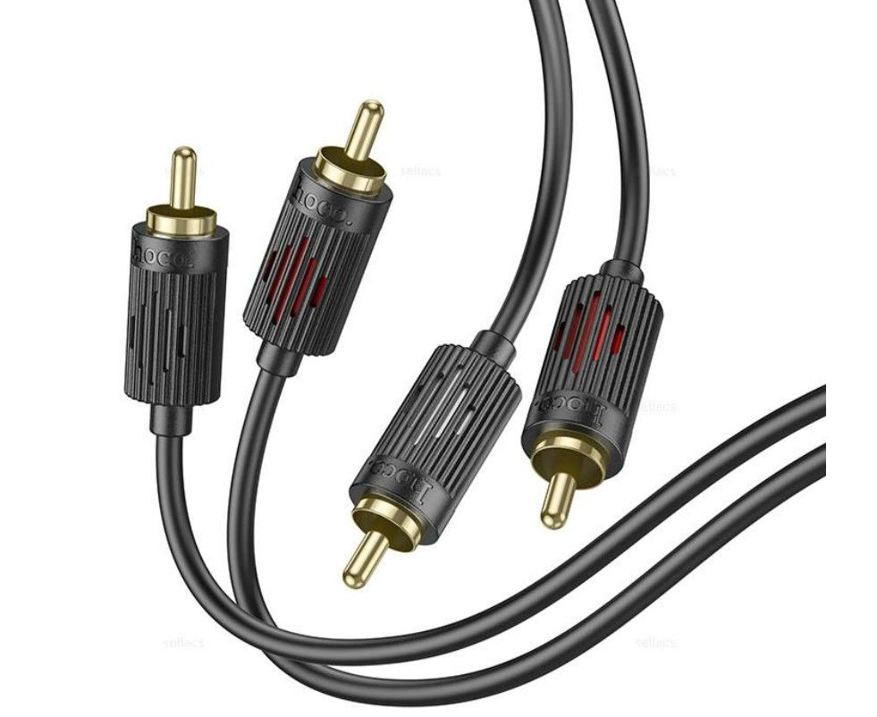 Аудио кабель HOCO UPA29/ AUX 2xRCA - 2xRCA/ 1.5m/ позолоченные контакты/ Нейлон/ Черный, (Арт. HC-07766)
