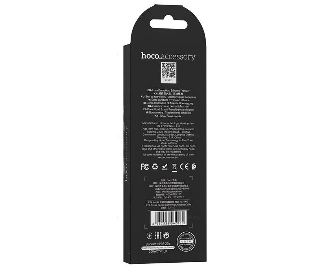 Кабель HOCO X14/ USB Lightning/ 1m/ 2A/ Нейлон/ Черный
