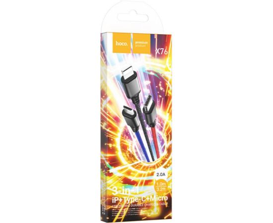 Кабель 3-in-1 HOCO X76/ USB: Lightning+Micro+Type-C/ 1m/ 2A/ Черный+Красный+Синий