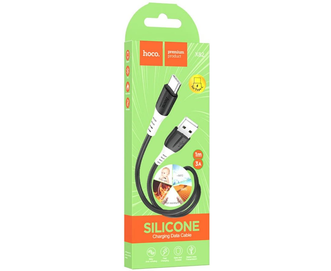 Кабель HOCO X82/ USB Type-C/ 1m/ 3A/ Силикон/ Черный