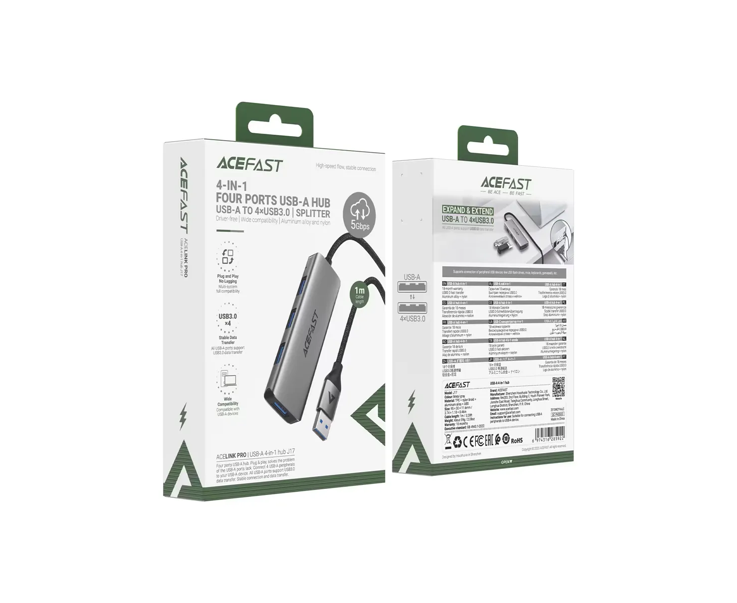 HUB ACEFAST J17 USB-A 4-in-1 metal gray
