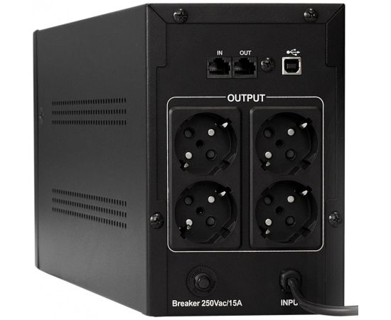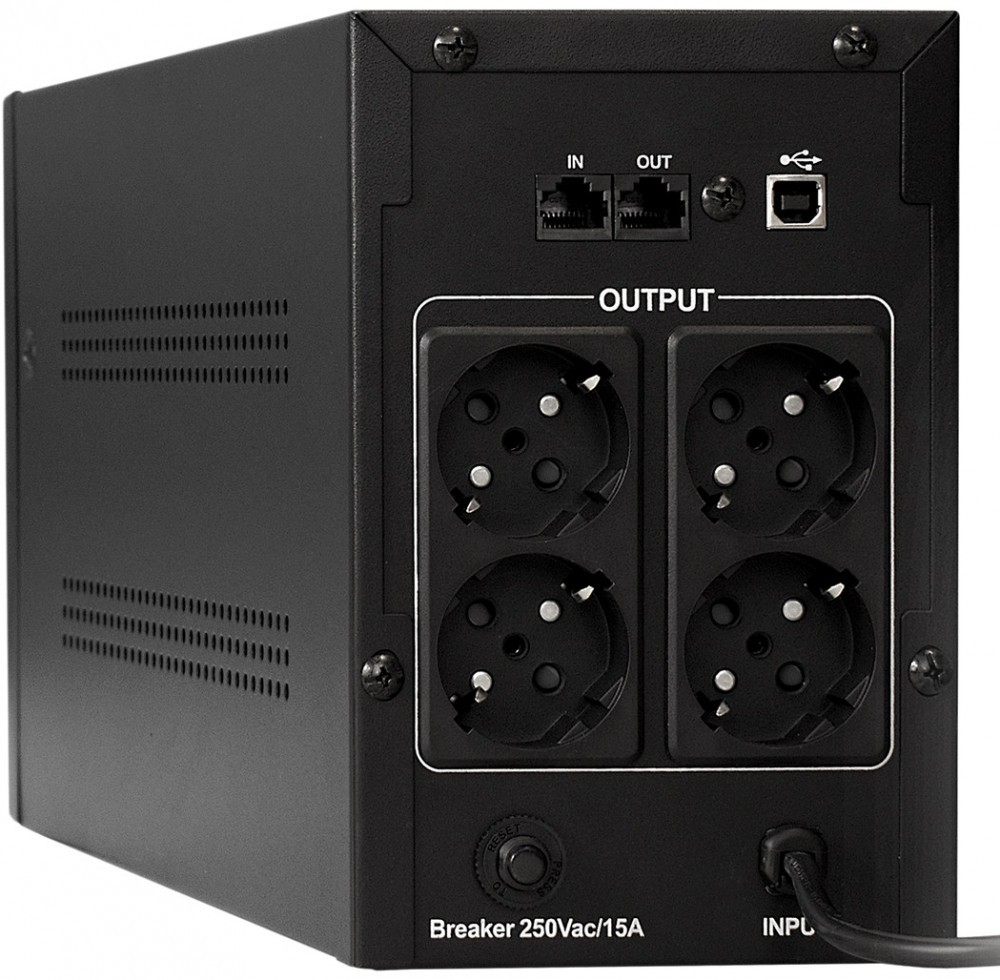 линейно-интерактивный, выходная мощность 1000 ВА / 650 Вт, 4 евророзетки, защита локальной сети, USB, время зарядки 6 ч