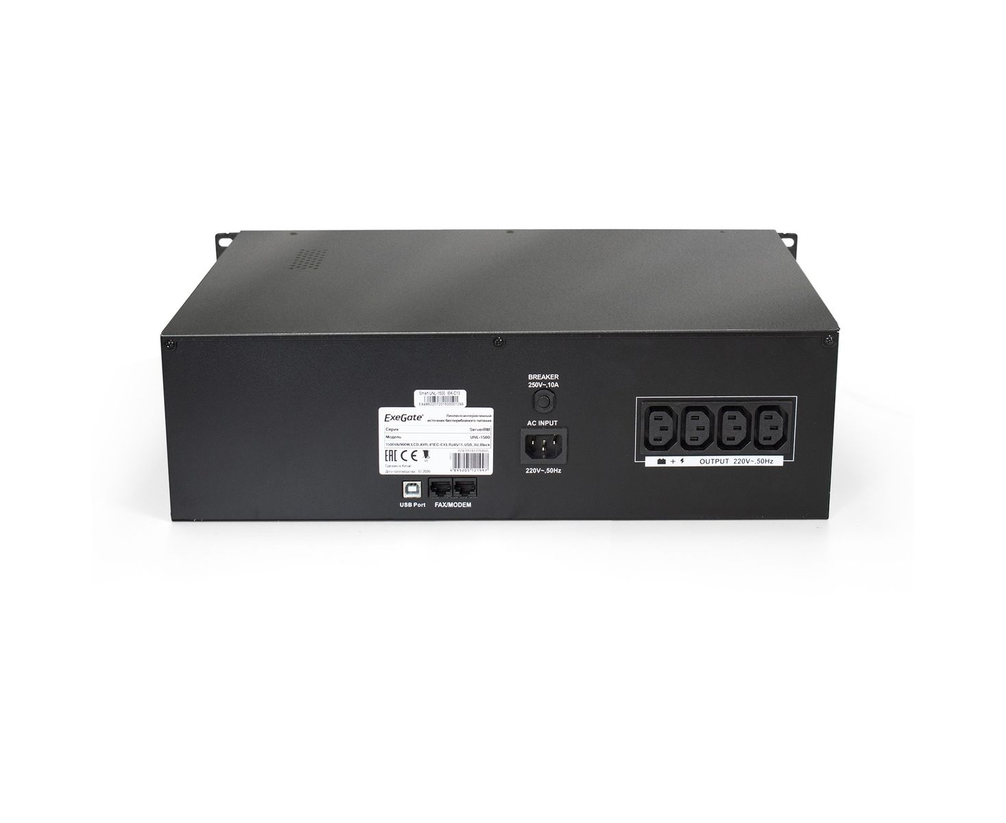 ИБП ExeGate EP285776RUS ServerRM UNL-1500.LCD.AVR.С13.RJ.USB.3U (1500VA/900W, LCD, AVR, 4*C13, RJ45/11, USB, 3U)