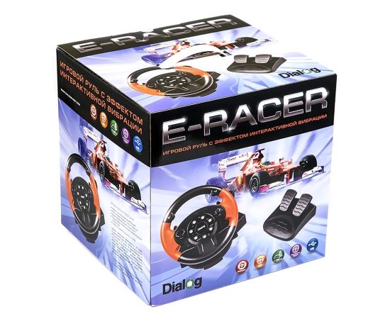 Игровой руль Dialog GW-125VR E-Racer - эф.вибрации, 2 педали, рычаг ПП, PC USB (115119)