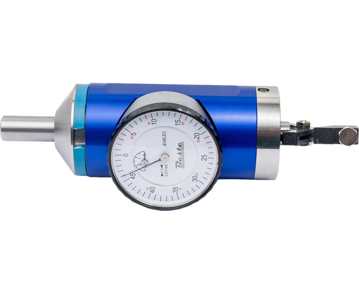 Индикатор-центроискатель BESTE 0-3мм, 0.01 мм AC00301110 используется для позиционирования шпинделя фрезерного станка относительно заготовки. Хвостовик вместе с индикаторным механизмом и щупом может свободно вращаться внутри корпуса устройства с индикаторной шкалой.