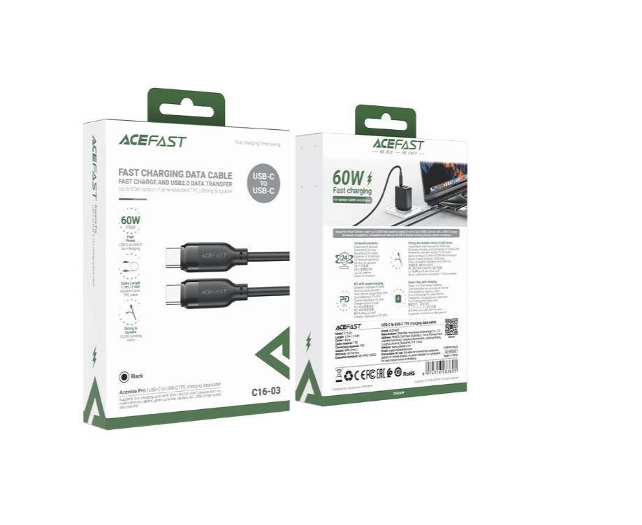 Дата-кабель ACEFAST AF-C16-03-BK USB-C To USB-C Tpe Charging Data Cable Black