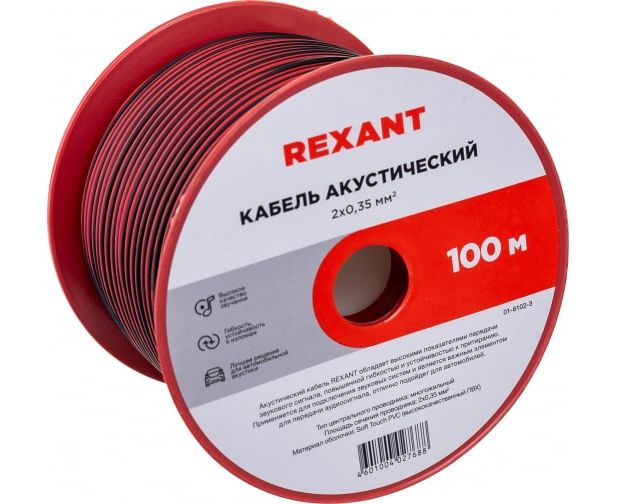 Кабель акустический Rexant 01-6102-3 2х0,35мм² красно-черный (бухта 100м)