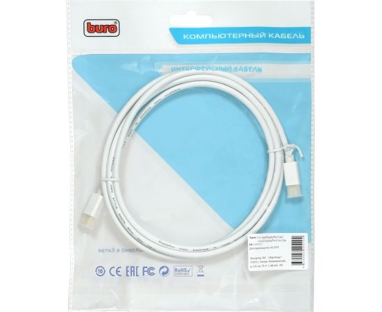 Кабель аудио-видео Buro 1.2v miniDisplayport (m)/miniDisplayport (m) 2м. Позолоченные контакты белый (BHP MDPP-2)