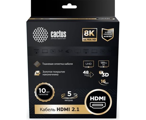 Кабель аудио-видео Cactus CS-HDMI.2.1-5 HDMI (m)/HDMI (m) 5м серебристый