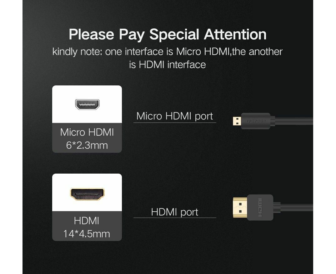 Кабель аудио-видео UGREEN HD127 (30104) Micro HDMI(m)-HDMI(m), 3м, Gold, ф/фильтр, черный