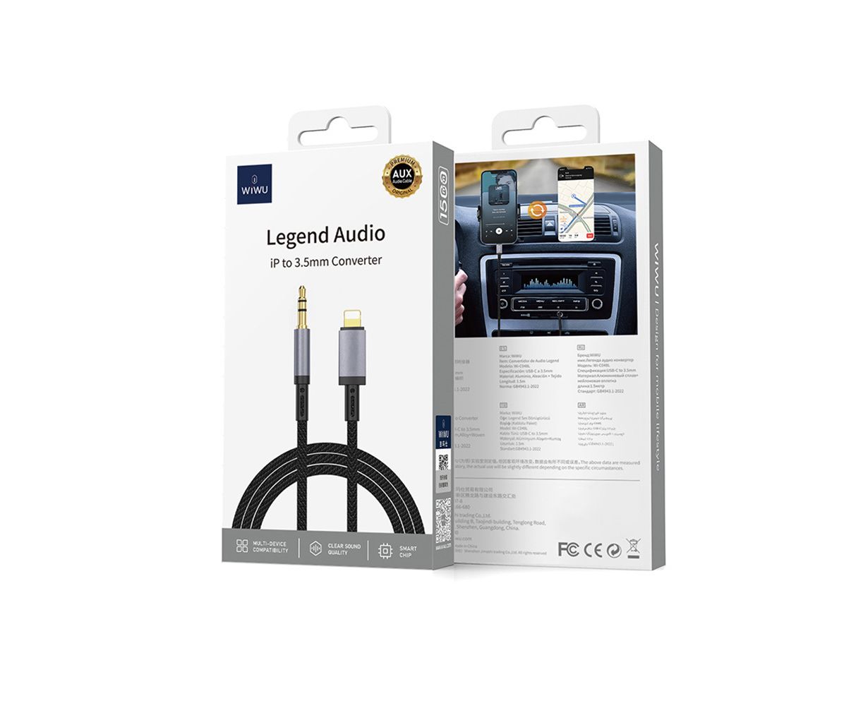 Кабель AUX Jack 3,5mm - Lightning WiWU Wi-C048L , 1.5M (Black)