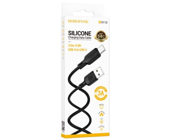 Кабель BOROFONE BX113/ USB Type-C/ 3m/ 3A/ Силикон/ Черный