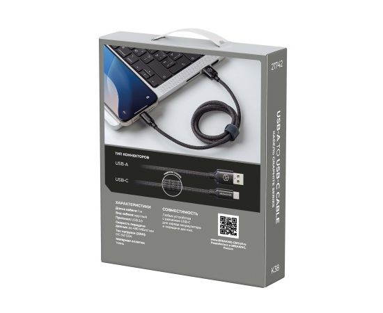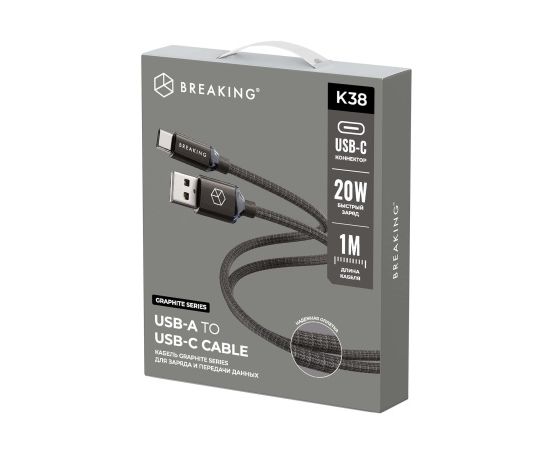 Кабель Breaking Graphite K38, USB-A - USB-C представляет собой аксессуар для зарядки и передачи данных устройств, оснащенных разъемом USB-C.