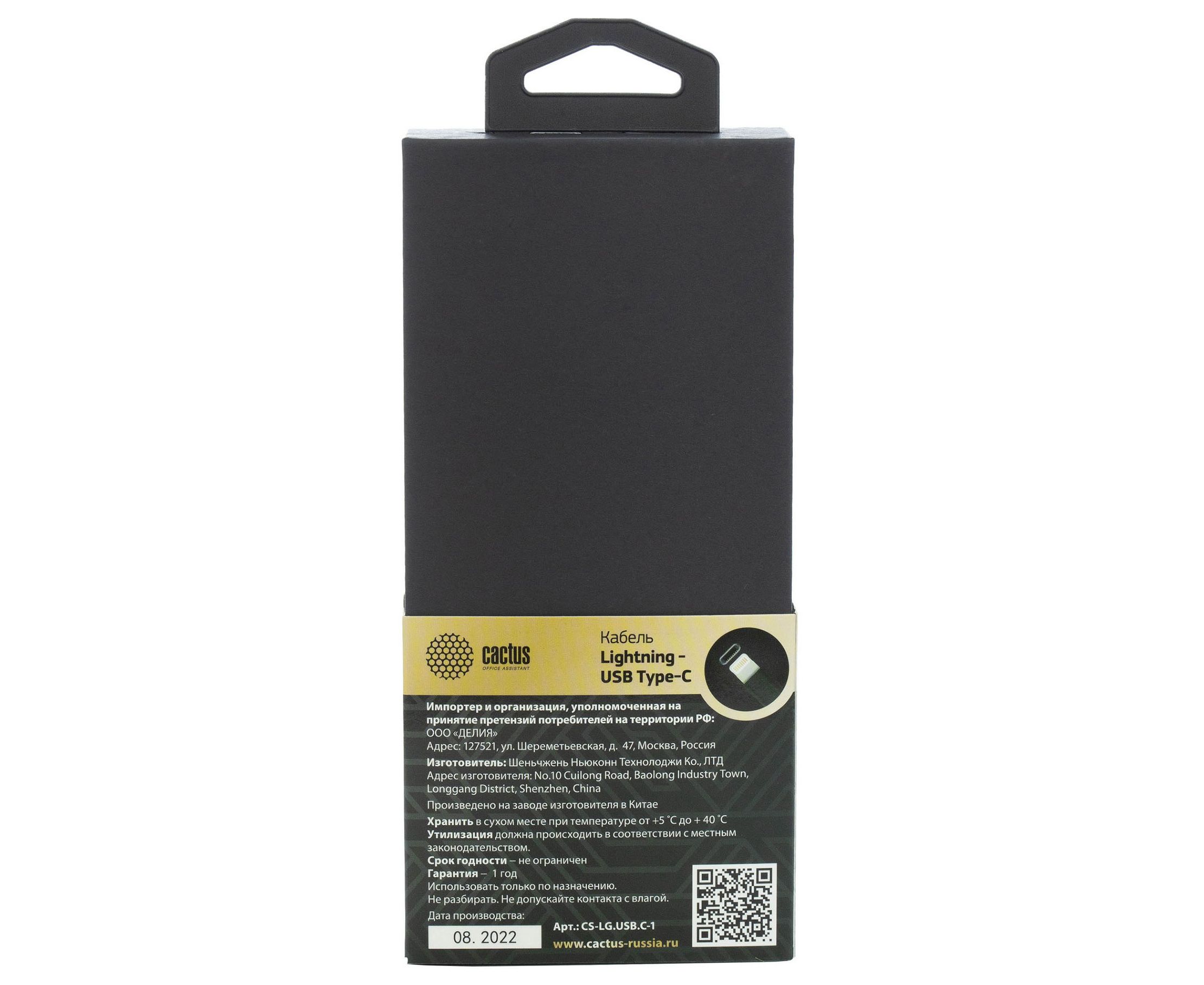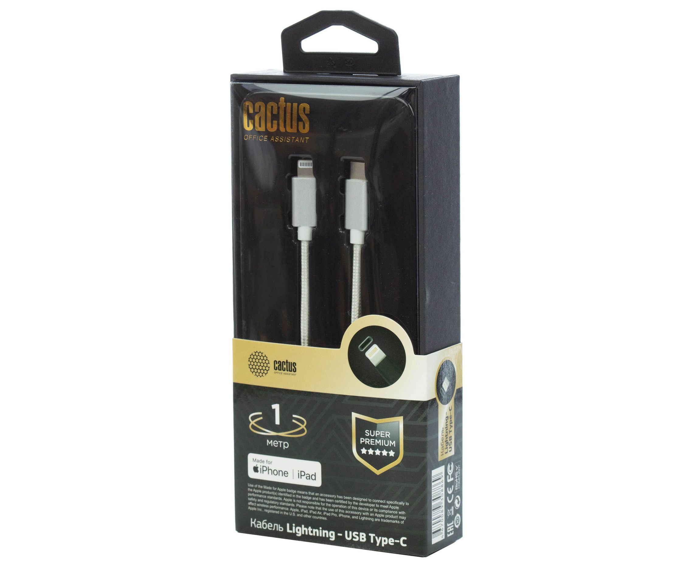 Кабель Cactus CS-LG.USB.C-1 USB Type-C m-Lightning m 1м белый