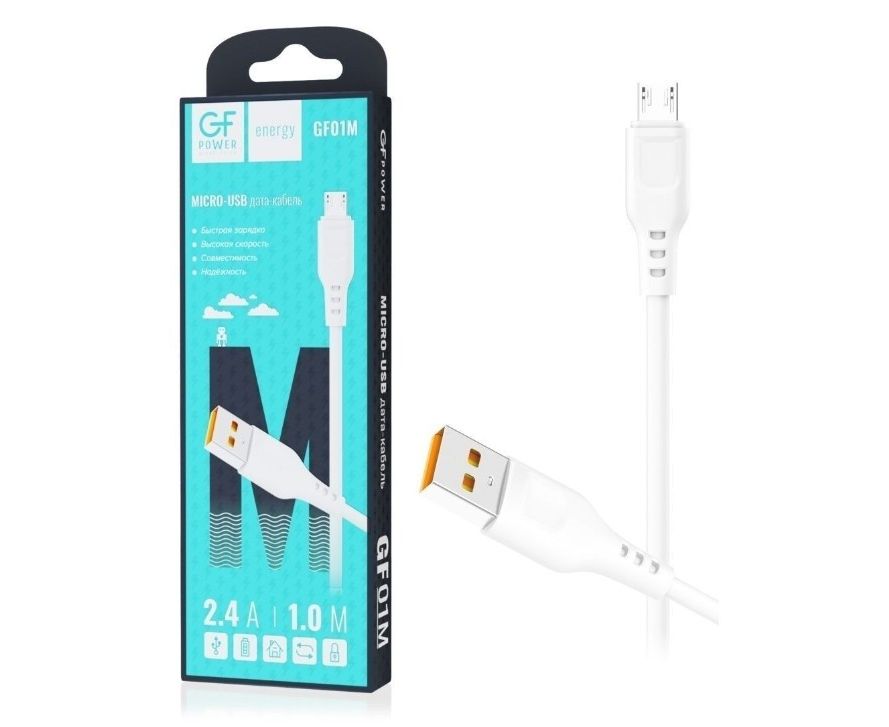 Кабель GFPower 01M USB (m)-microUSB (m) 1.0м 2.4A ПВХ белый (1/200/800)