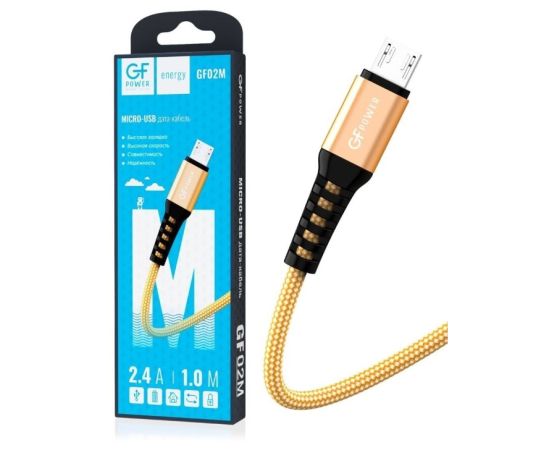 Кабель GFPower 02M USB (m)-microUSB (m) 1.0м 2.4A нейлон золотой (1/200/800)