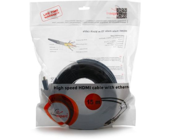 Кабель HDMI Cablexpert CC-HDMI4L-15M, 15м, v2.0, 19M/19M, серия Light, черный, позол.разъемы, экран, пакет