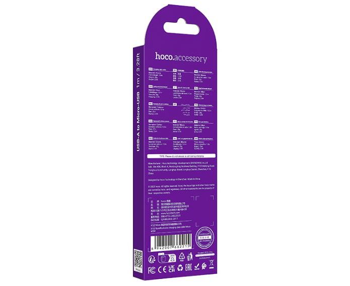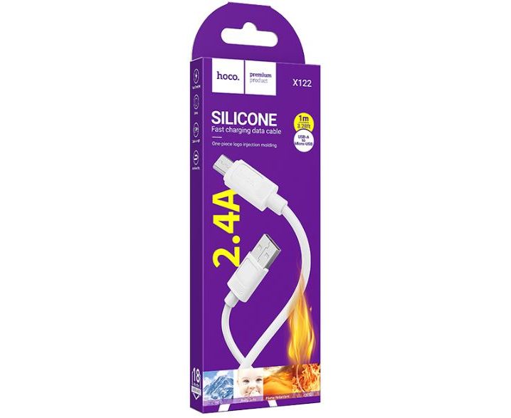Кабель HOCO X122/ USB Micro/ 1m/ 2,4A/ Белый