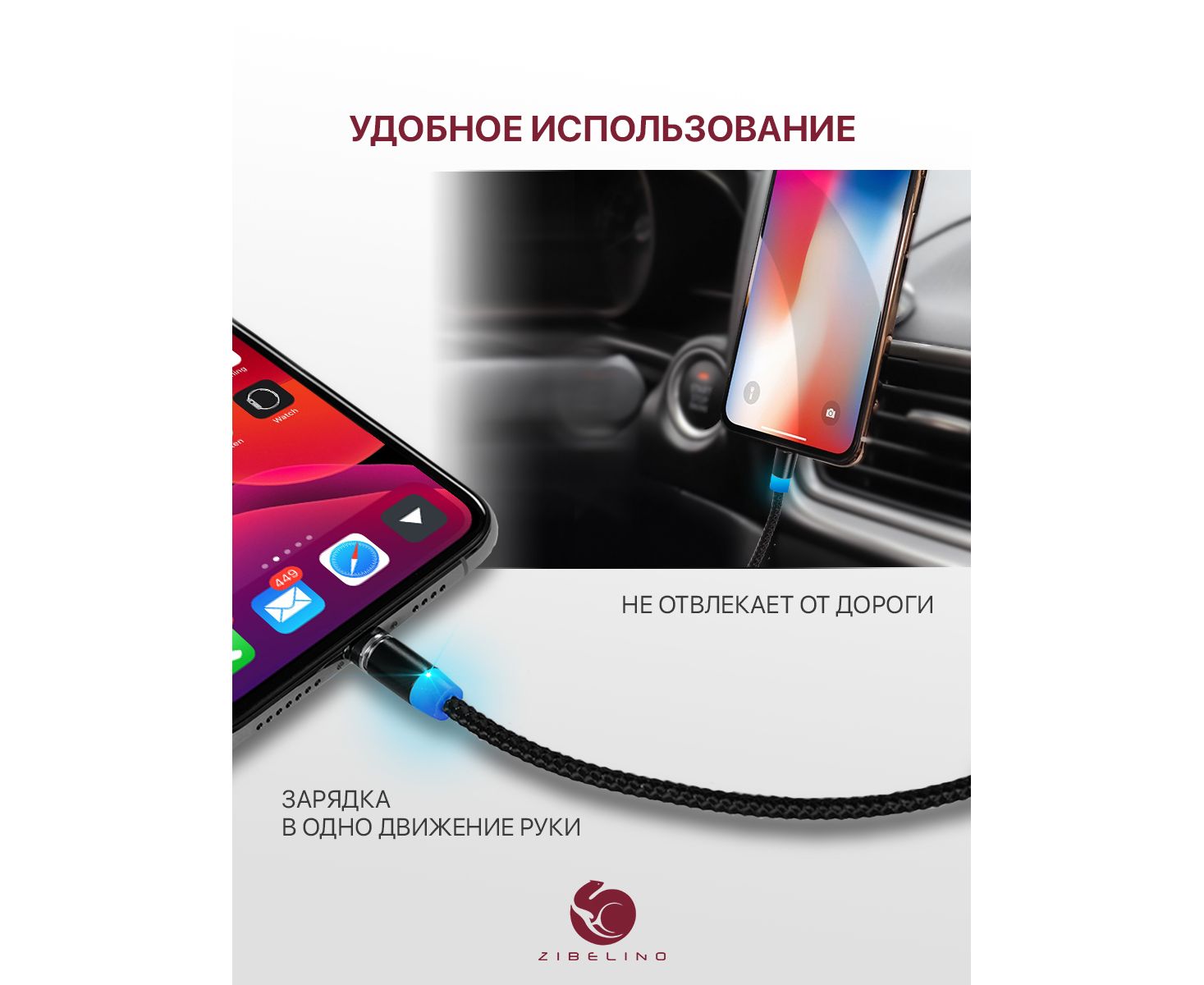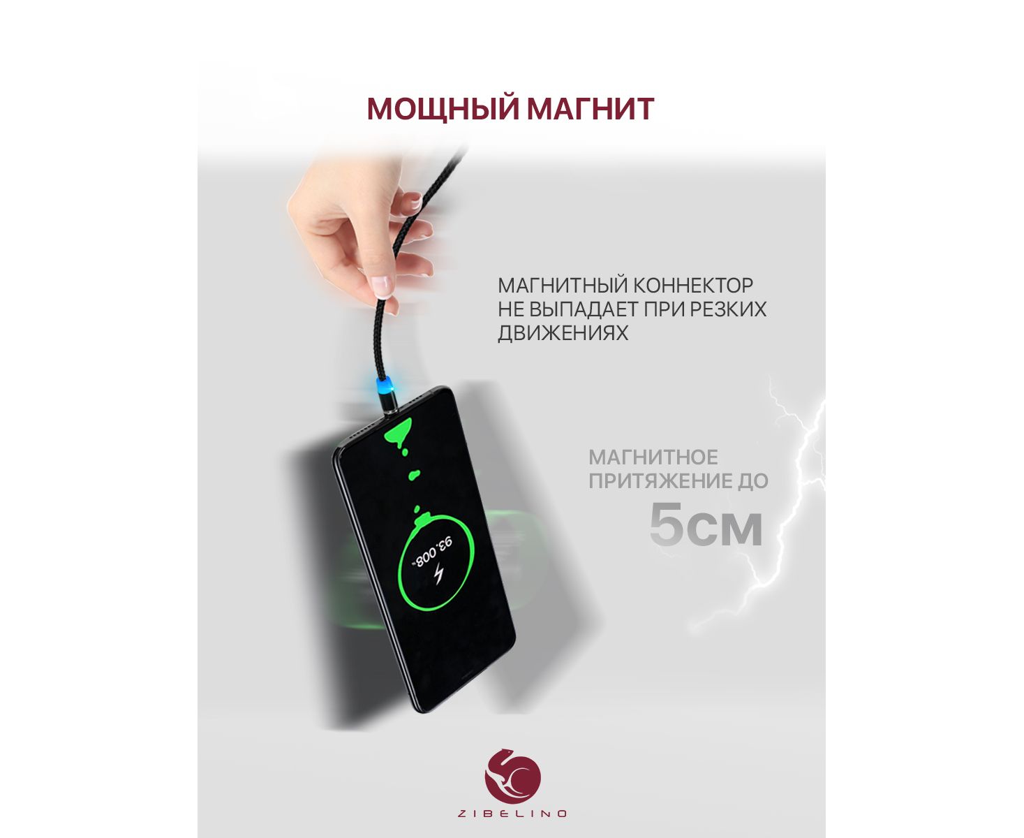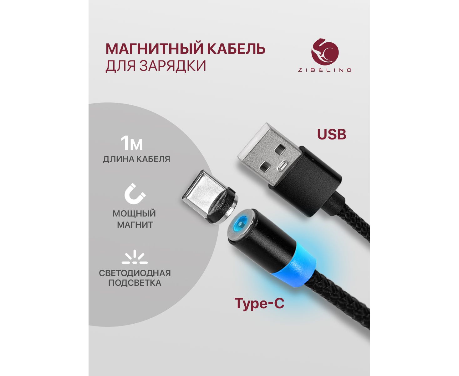 Магнитный кабель Type-C ТМ Zibelino состоит из провода, разъема с портом USB и магнитного коннектора Type-C. Магниты притягиваются друг к другу на расстоянии до 5 сантиметров, тем самым обеспечивается надёжное соединение телефона с зарядным устройством. Преимущества использования магнитного кабеля очевидны: снижение риска выламывания порта разъемом, уменьшение износа контактов порта и разъема. Замена портов в современной технике является наиболее частой причиной обращения в сервис. Небольшая толщина коннектора органично смотрится с телефоном, защищая гнездо от влаги и засоров. Незаменимая вещь в автомобиле и путешествиях. Нейлоновая обмотка позволяет избежать разломов кабеля при сгибах и при использовании на морозе.