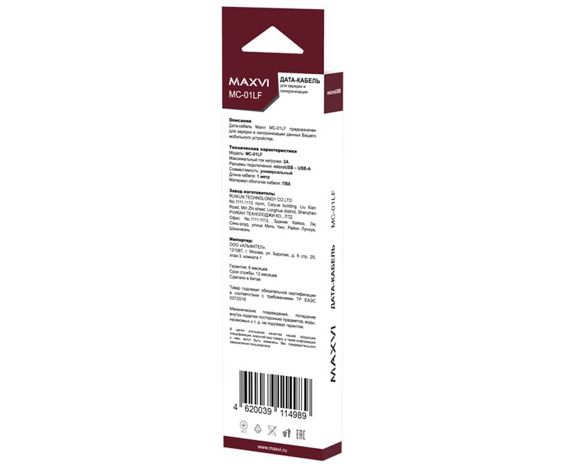 Кабель Maxvi MC-01LF blue USB-A-microUSB, 2A