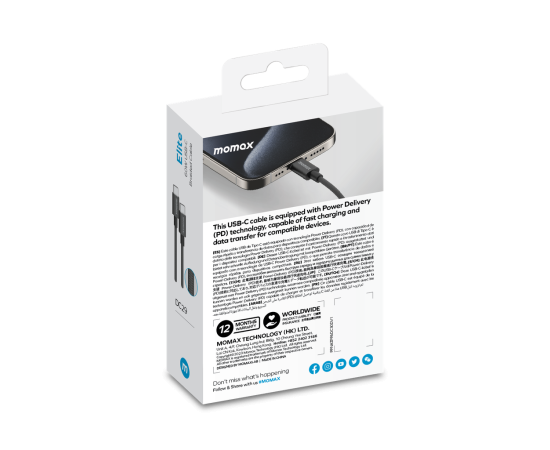 Кабель Momax Elite DC30D USB-C/USB-C 1.5м Black