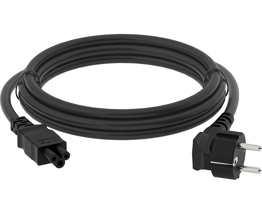 Кабель питания применяется для подключения к сети 220 Вольт блоков питания ноутбуков, проекторов и других периферийных устройств, имеющих соответствующий разъём . С одной стороны кабель имеет вилку стандарта CEE 7/7 (Schuko) с заземляющим контактом, с другой ‒ трех контактный разъем типа IEC C5, в обиходе известный как «микки-маус».