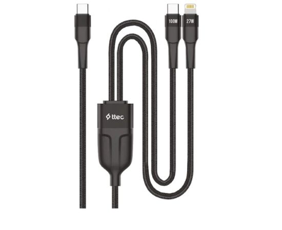 Кабель TTEC 2DK56S AlumiCable Duo USB-C To USB-C&Lightning Fast Charge 100W Cable, длина 150см черный